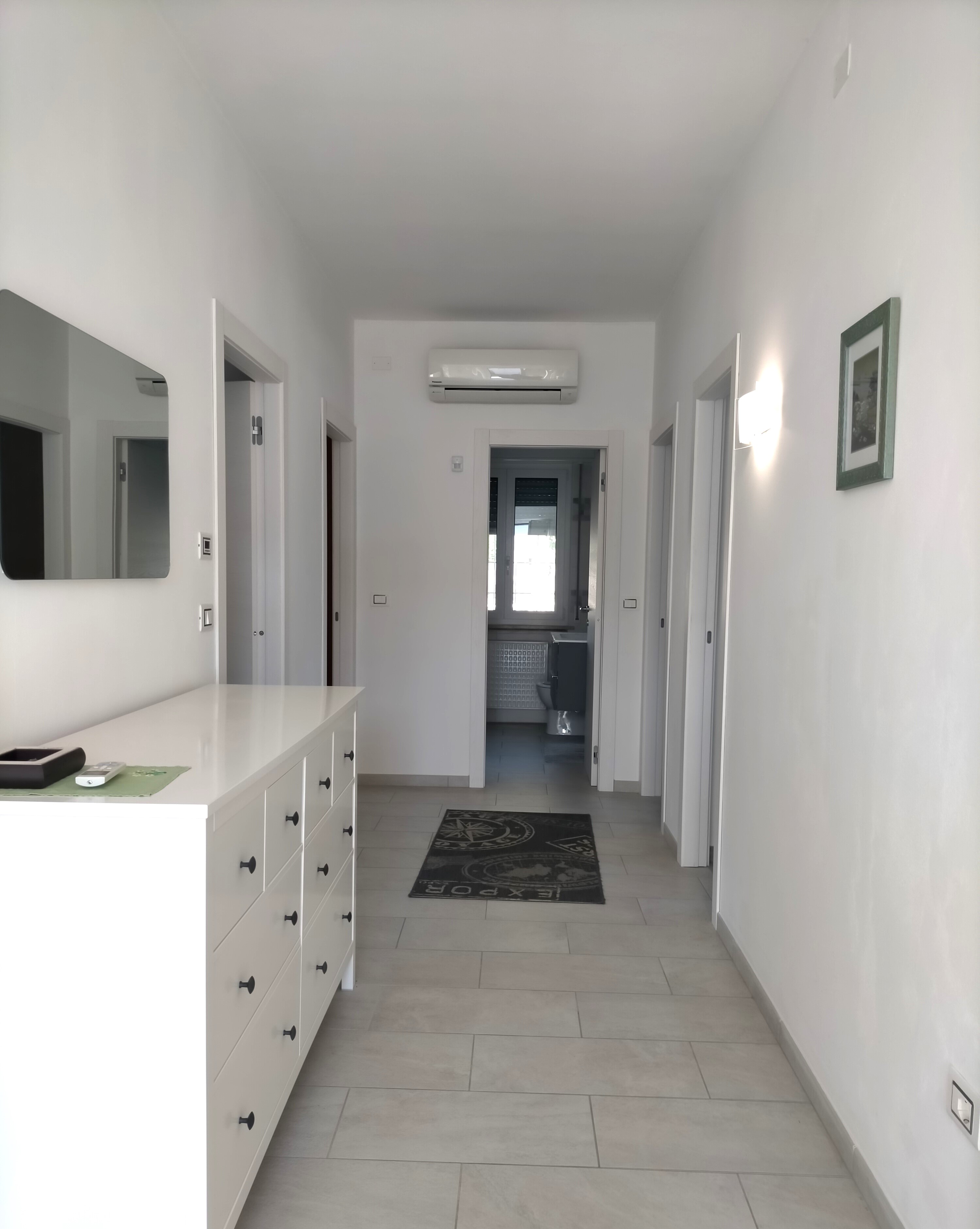 Le finiture dell’intera villetta sono chiare, infissi in pvc bianco doppio vetro, porte interne bianche, pavimenti chiari, antifurto perimetrale.