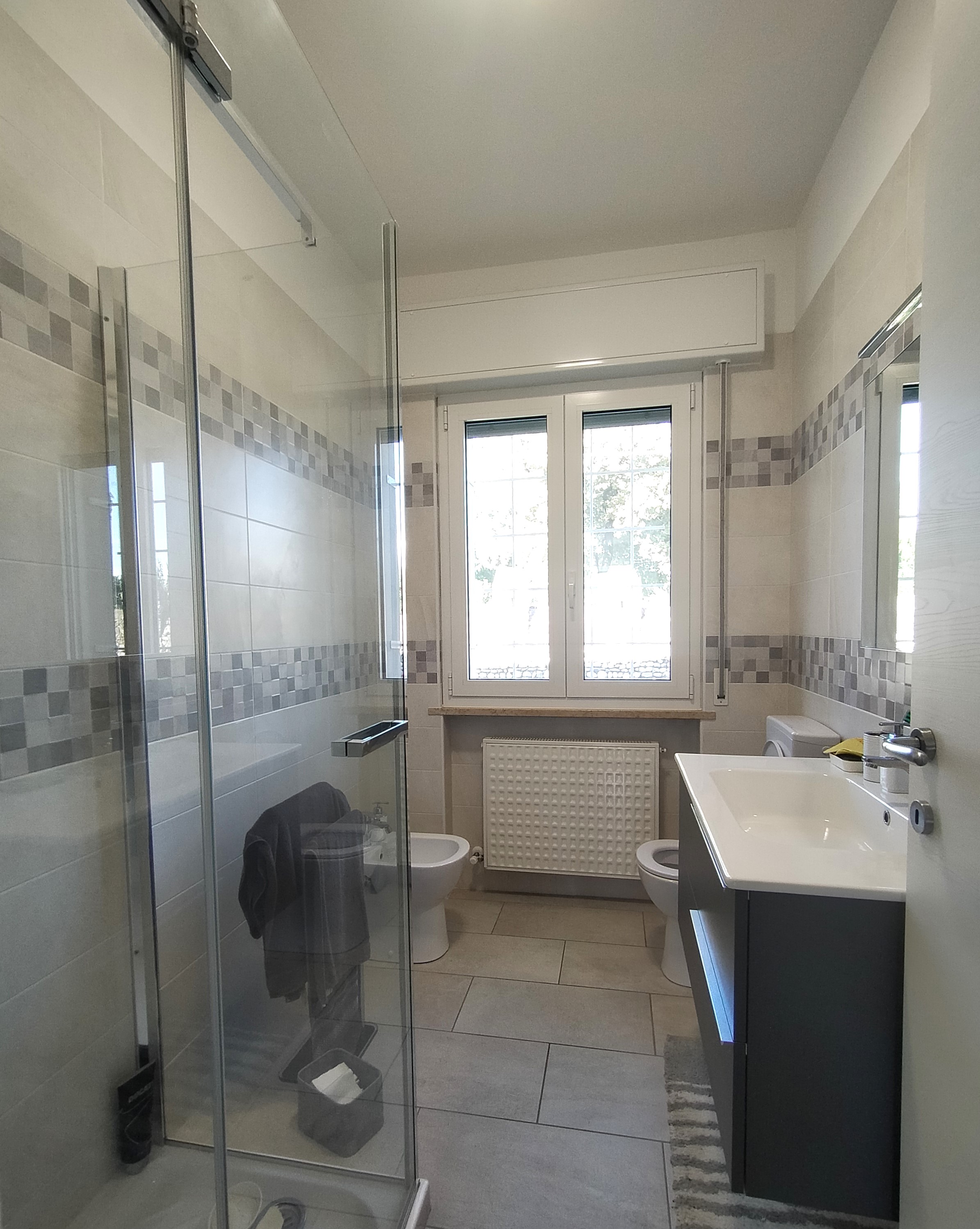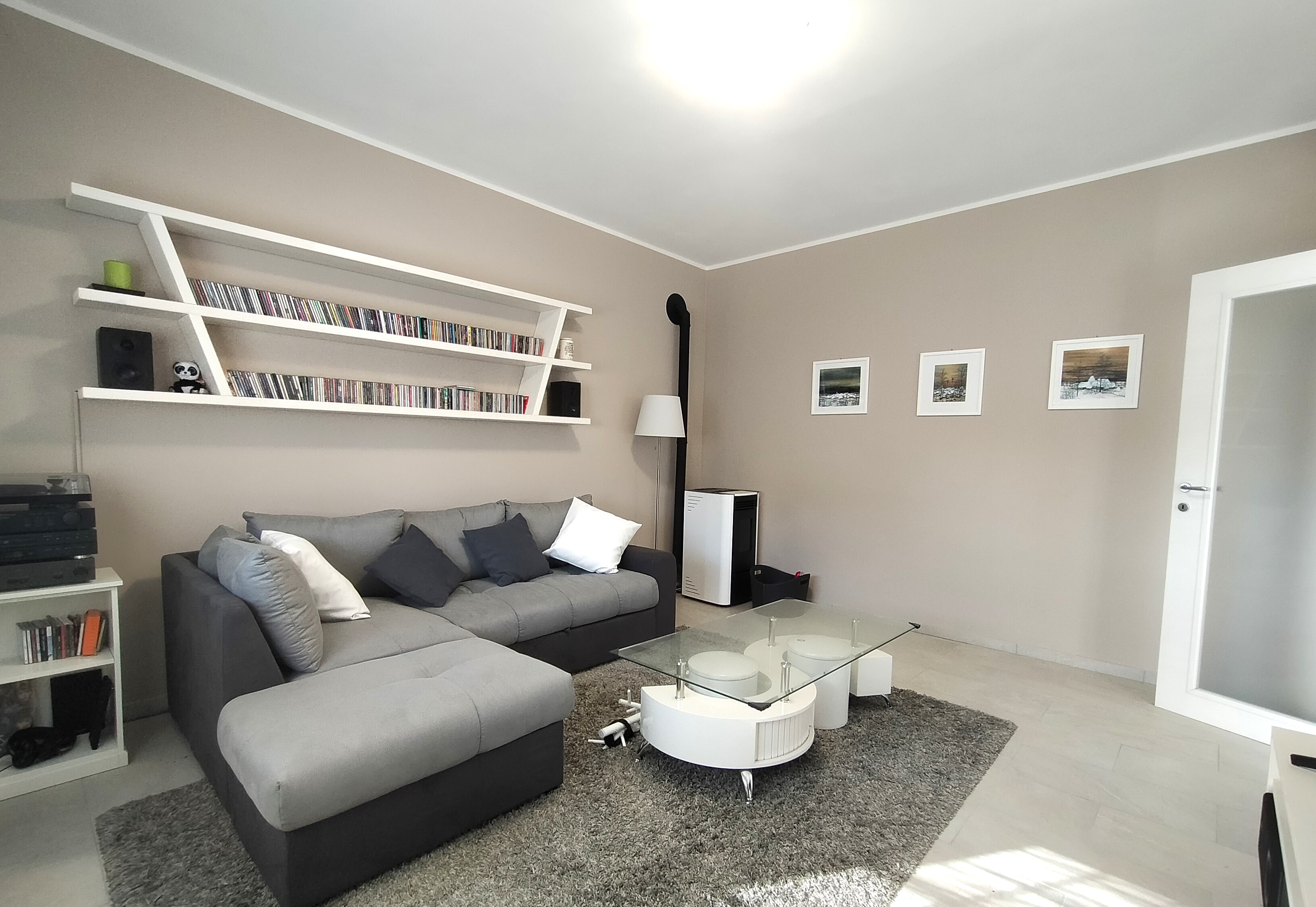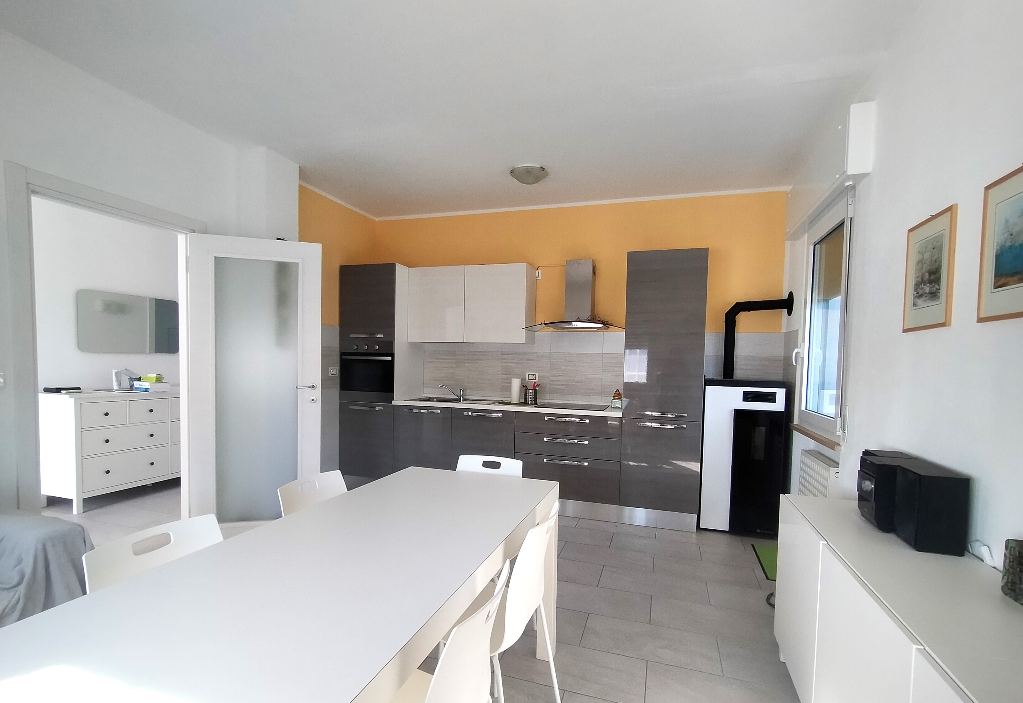 P.rialzato: atrio d’ingresso, ampia e luminosa cucina-pranzo, salotto con canna fumaria per stufa a pellet-caminetto, due camere da letto matrimoniali, camera da letto singola e bagno finestrato con doccia;